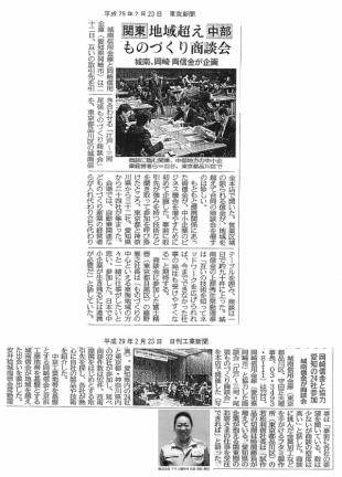 平成29年2月23日付け 日刊工業新聞にて 弊社代表のインタビューが掲載されました。 城南信用金庫様と岡崎信用組合様主催の「江戸~三河・尾張ものづくり商談会」 にて取材を受け、「試作品の切削は時間勝負が増えている。愛知県の企業が抱える関東圏の お客さまの仕事を受注できれば」とコメント